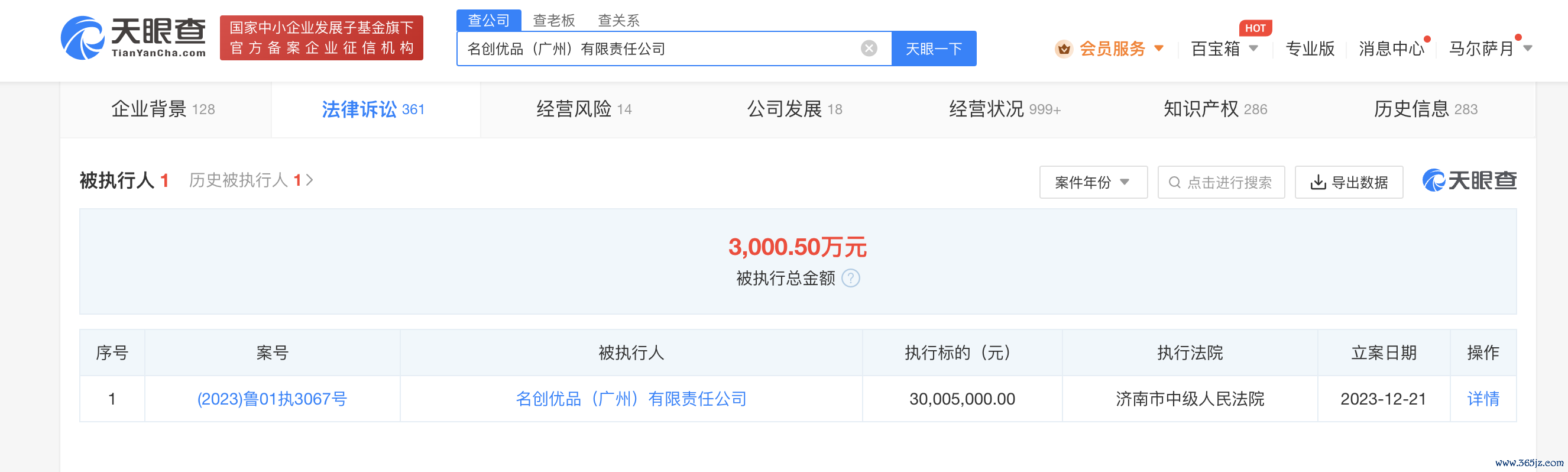 天眼查App表现,近日,名创优品(广州)有限包袱公司、名创优品(横琴)企业解决有限公司、名创优选科技(广州)有限公司、安庆市嘉欣医疗用品科技股份有限公司、皆文珺新增一则被执行东说念主信息,执行场所3000.5万元,执行法院为济南市中级东说念主民法院,关联案件为深圳全棉期间科技有限公司与上述公司干系私行使用他东说念主有一定影响的商品称号、包装、遮挡纠纷。